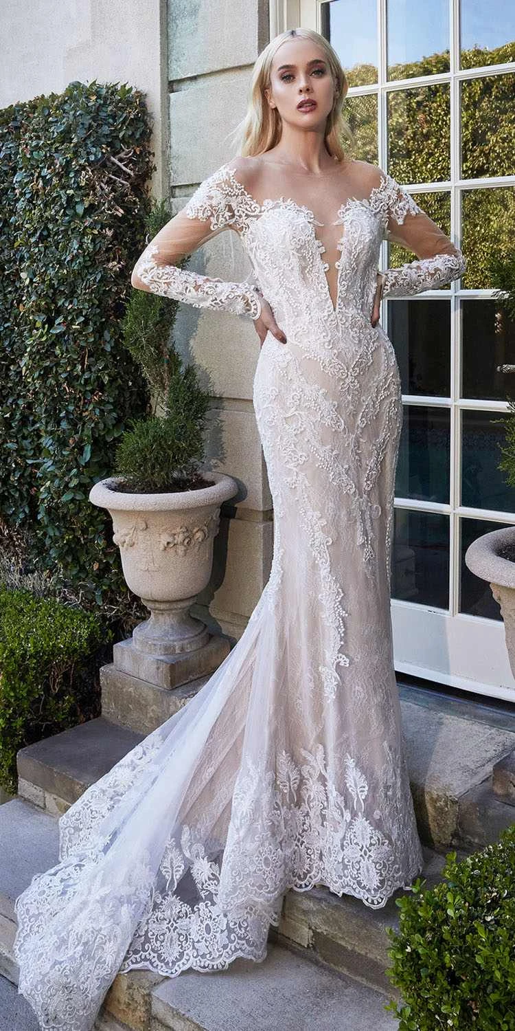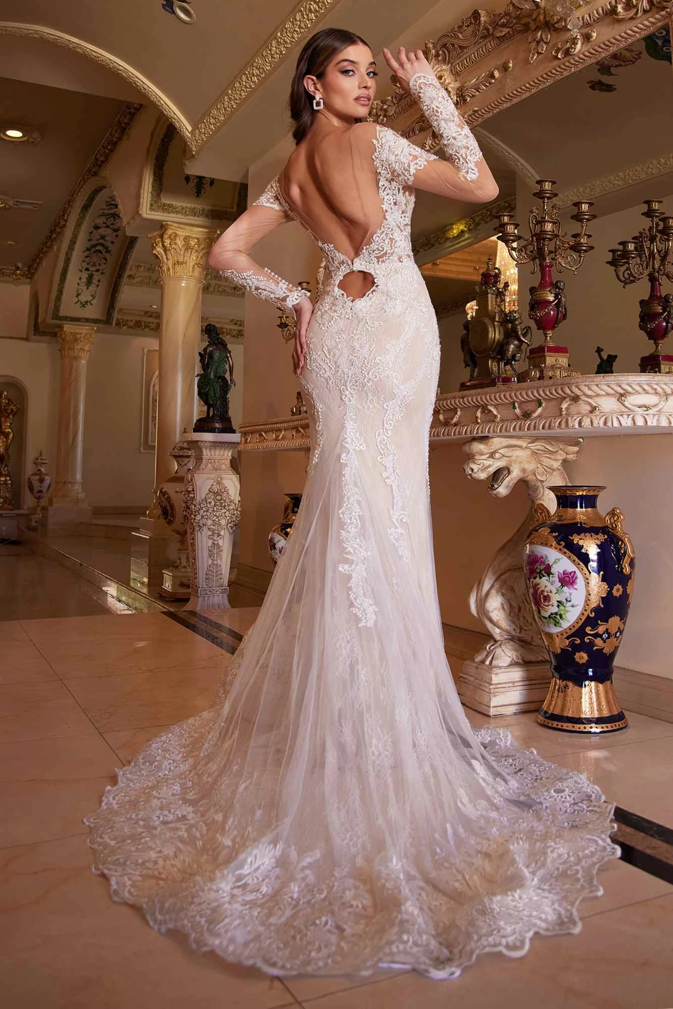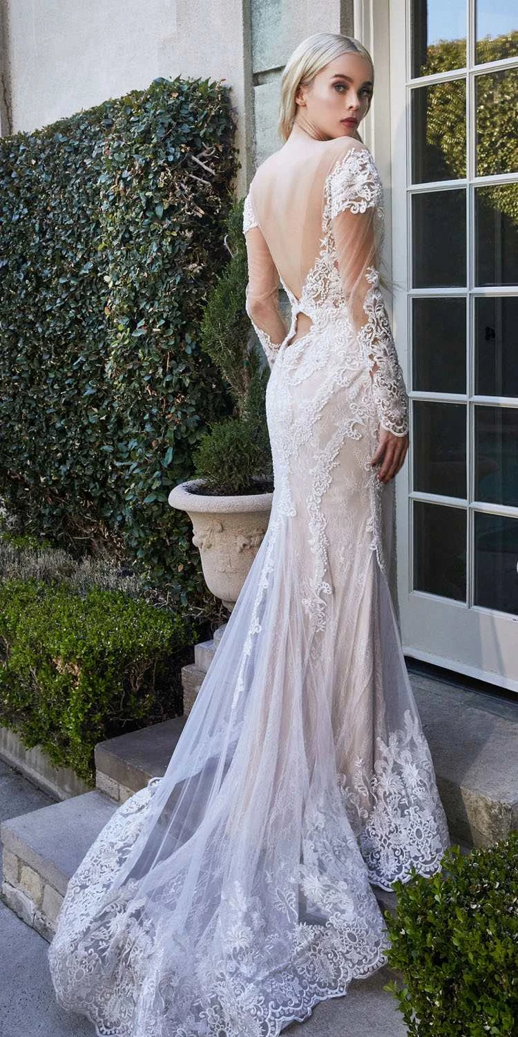 Imagine yourself wearing this beautiful long mermaid formal dress by Andrea & Leo A1022. This gorgeous long sleeve lace wedding gown showcases beautiful lace work throughout the body. Classic from front and sexy from back with a heart-shaped opening, this gown truly is designed to make a bride feel beautiful. The lace at sleeve grazes the knuckle for the ultimate ring-closeup shot. Luxurious lace scalloped hem is elongated at back to creates a breathtaking mermaid silhouette. A one-of-a-kind long dress for red carpet events, pageant, mother of the bride or in any other formal occasions!