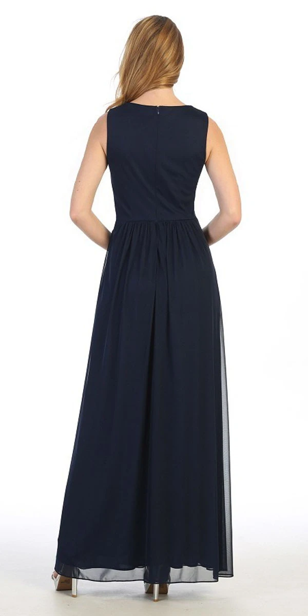 Imagine yourself wearing this full-length A-line gown for your next special event by Celavie 6474. This empire waist dress features a V-neckline and rhinestones embellishing the waist. An ideal sleeveless dress for dinner party, semi-formal, wedding guest or in any other formal occasions!Â