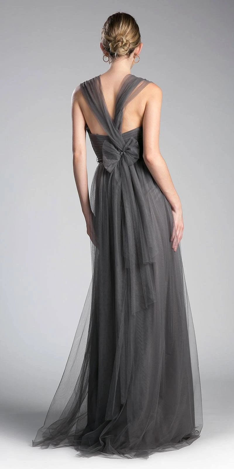 Enjoy the celebration wearing this beautiful A-line silhouette gown by Cinderella Divine ET322. What makes this dress unique is it’s ability to transform into many different styles. If you’re wanting a halter top for the evening, no problem. This convertible dress can be changed into a short sleeve gown, strapless or even make a bow. Add this dress to your collection as it is multi-faceted with an array of different looks that will suit your needs. Comfy fabric with tulle overlay make this infinity style gown transform with endless possibilities. Available in many colors and sizes from 4 to 18. A great dress for bridesmaids and in any other special events!