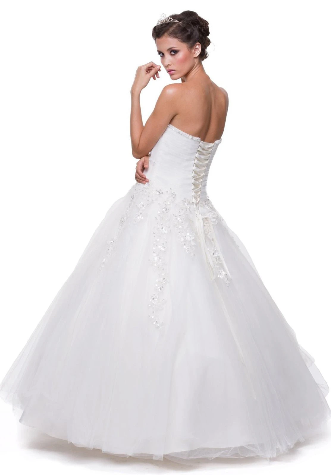 CLEARANCE ITEM – Show off your style in this gorgeous poofy quinceanera dress by Juliet 301. This long A line mesh/tulle dress is strapless with a sweetheart neckline and decorated with beading all throughout. The back of the dress has a lace up tie back for extra flexibility. This dress is great for many different occasions!
