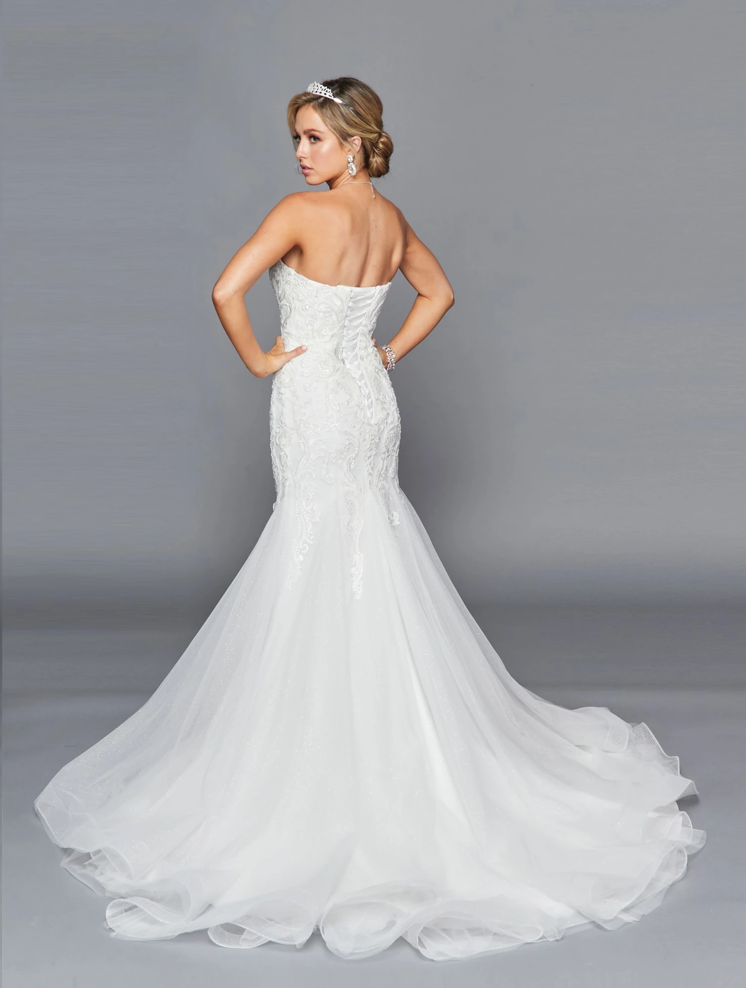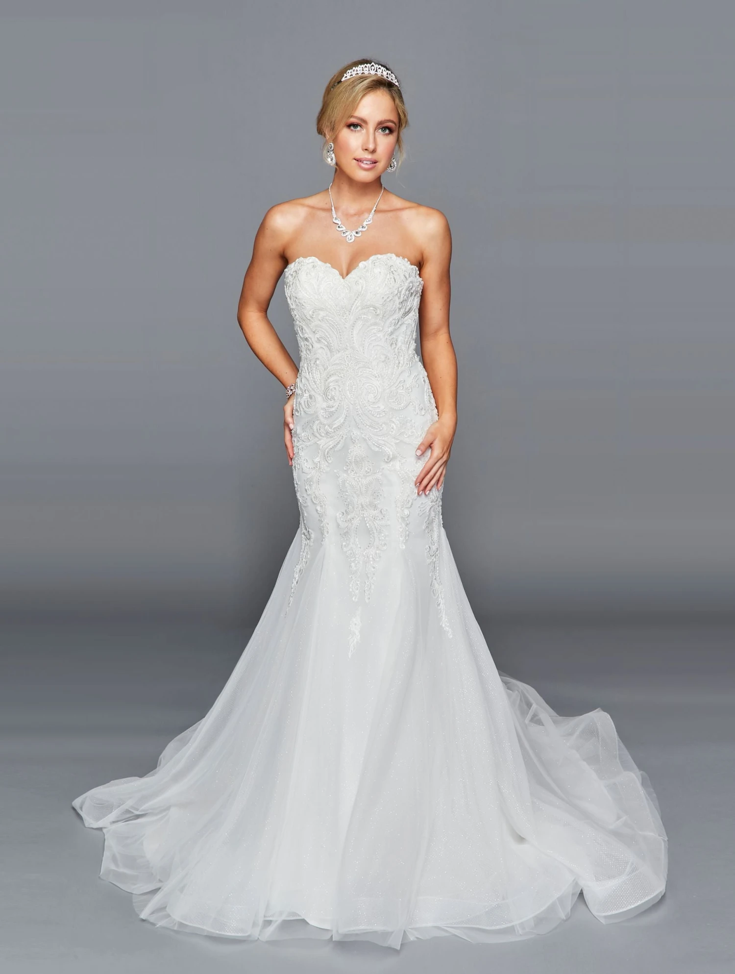 Imagine yourself wearing this beautiful floor length trumpet/mermaid wedding gown for your upcoming wedding or debutante by DeKlaire Bridal 440. Strapless sweetheart neckline sparkle glitter lining mermaid court train wedding dress with beaded tulle clear sequins applique. A beautiful wedding dress to make your day feel extra special!