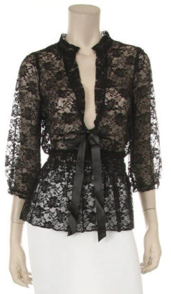White Lace Top 3/4 Length Sleeve V Neck With Bow(White Lace Top 3 4 Length Sleeve V Neck With Bow)