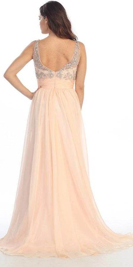EXTREMELY REDUCED PRICE – While supplies last! – A perfect pick for grand dinner outings or classy gatherings, this A-line gown in mint comes designed with a meshed yoke that is extensively studded with rhinestones to form a beautiful jewel neckline. This studded arrangement extends up to the sweetheart shaped bodice to create a dazzling look on this sleeveless dress. A ruched belt graces the empire waist, while a flared A-line skirt reaches up to floor-length for a graceful design.