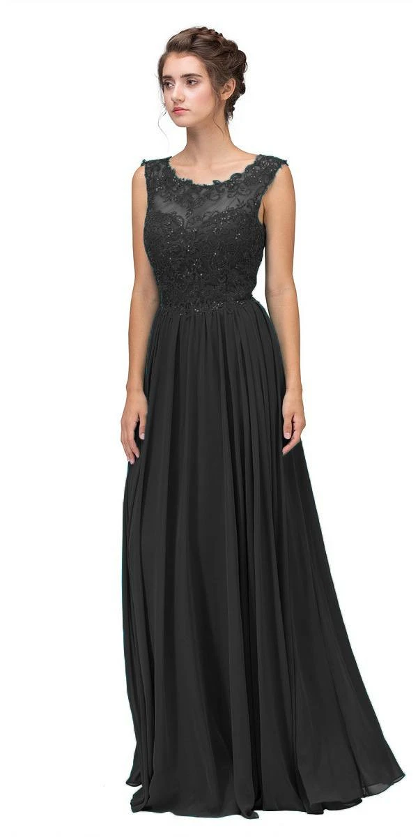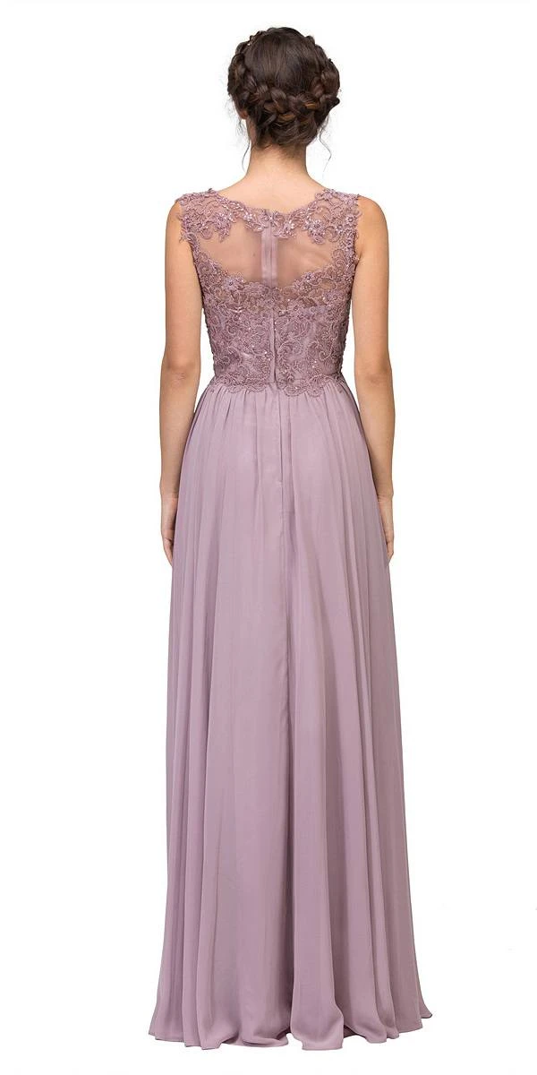 Elegant floor length a-line silhouette formal dress by Eureka Fashion 3711. A sleeveless gown with scoop illusion neckline, corded lace bodice with tiny bead accent. A gathered waist complemented the floor length skirt that makes this dress exceptional and a figure flattering outfit for any formal occasions.