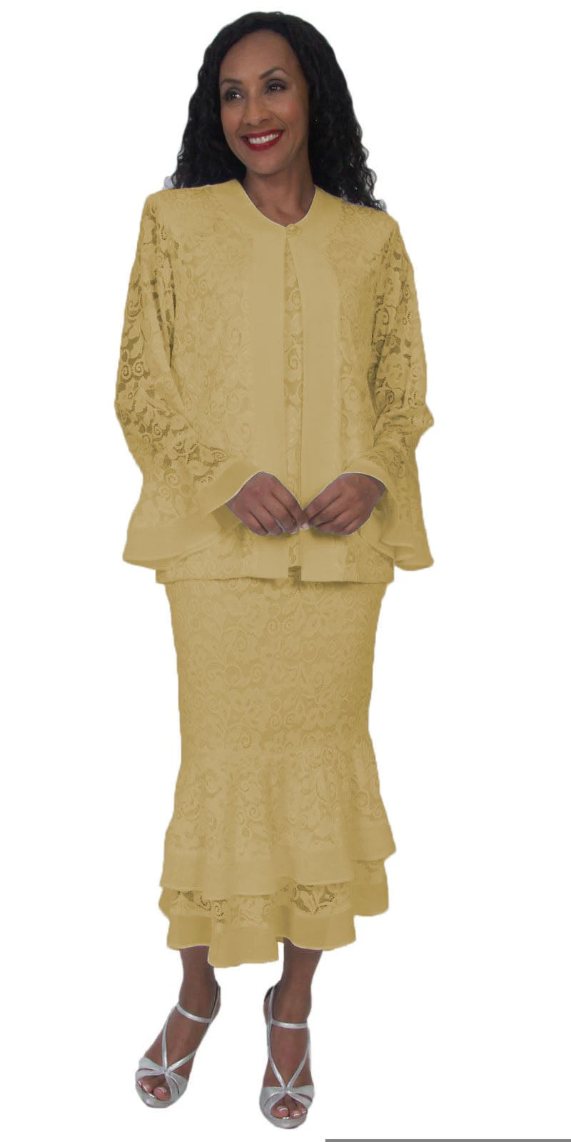 If modesty and classy is important, then you’ll love this plus size 3-piece lace dress by Hosanna Design 5514 for your next special occasion! This 3-piece set features a sleeveless top, fit and flare tea length skirt and long sleeve jacket.