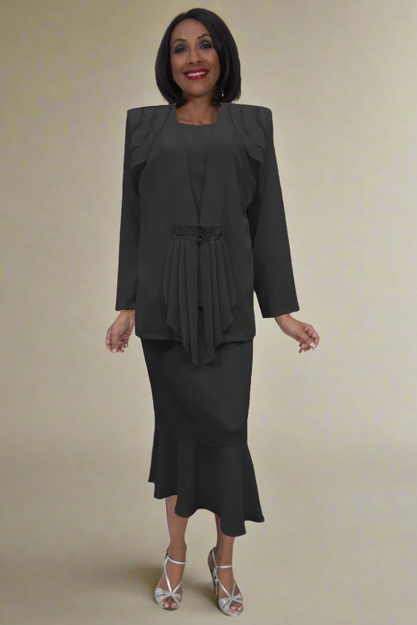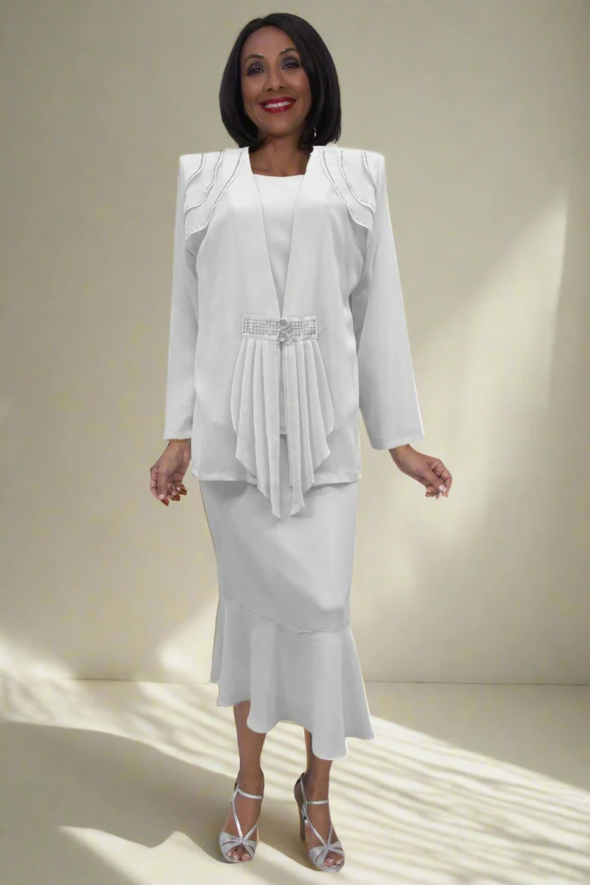 If modesty and classy is important, then you’ll love this plus size 3-piece dress by Hosanna Design 5563 for your next special occasion! This 3-piece set includes a sleeveless top and tea length skirt and a long sleeve jacket