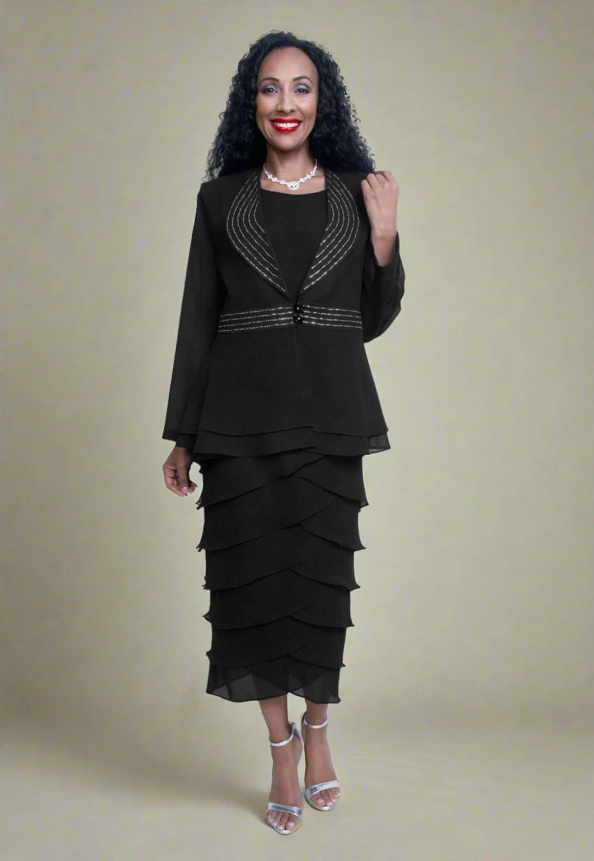 If modesty and classy is important, then you’ll love this plus size 3-piece dress by Hosanna Design 5569 for your next special occasion! This 3-piece set includes a sleeveless top and tea length skirt and a long sleeve jacket