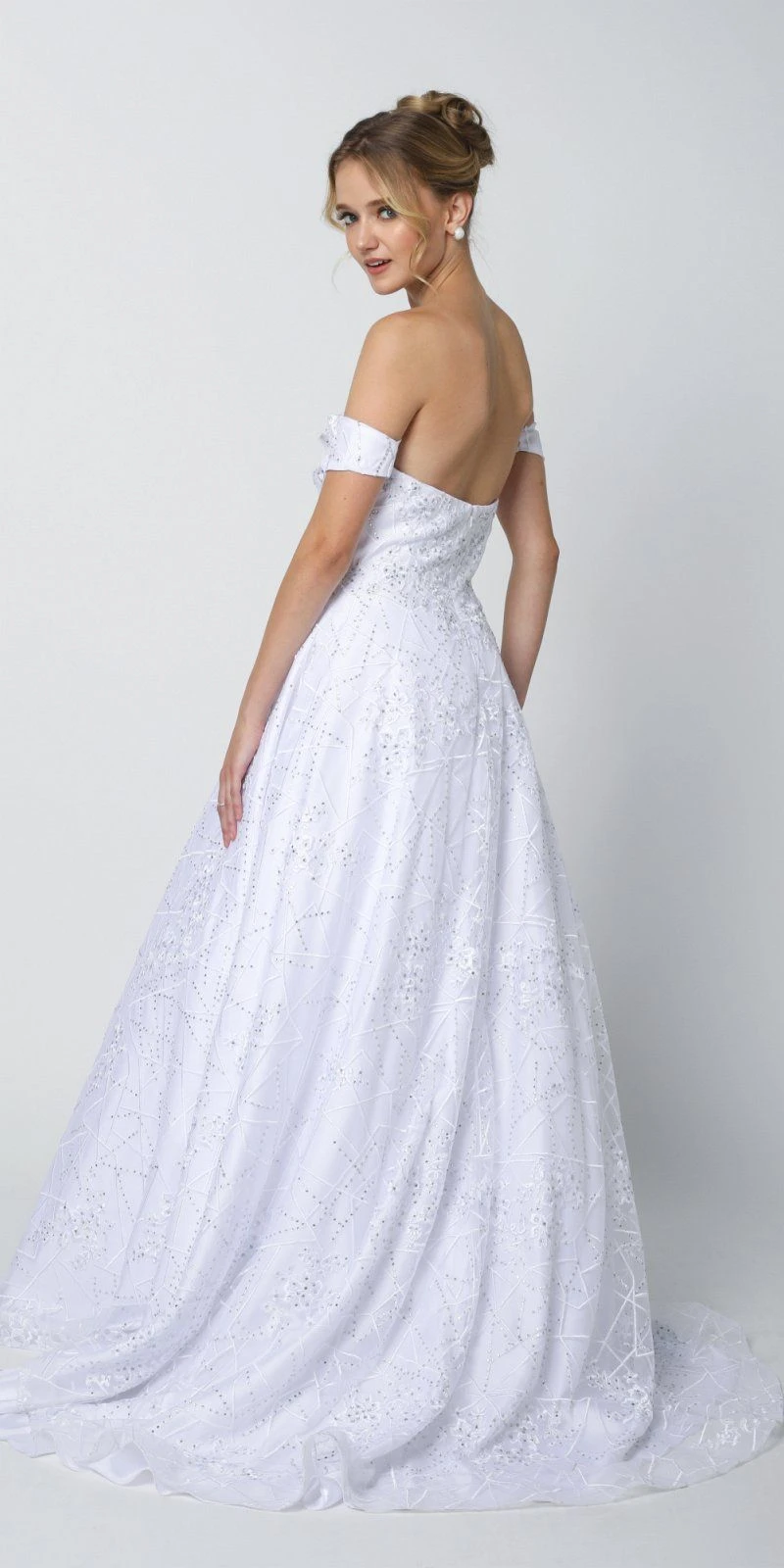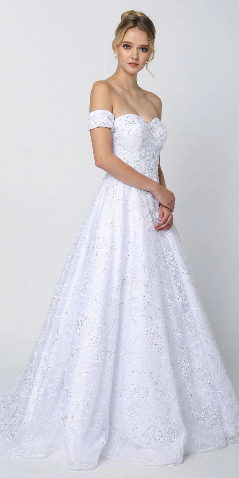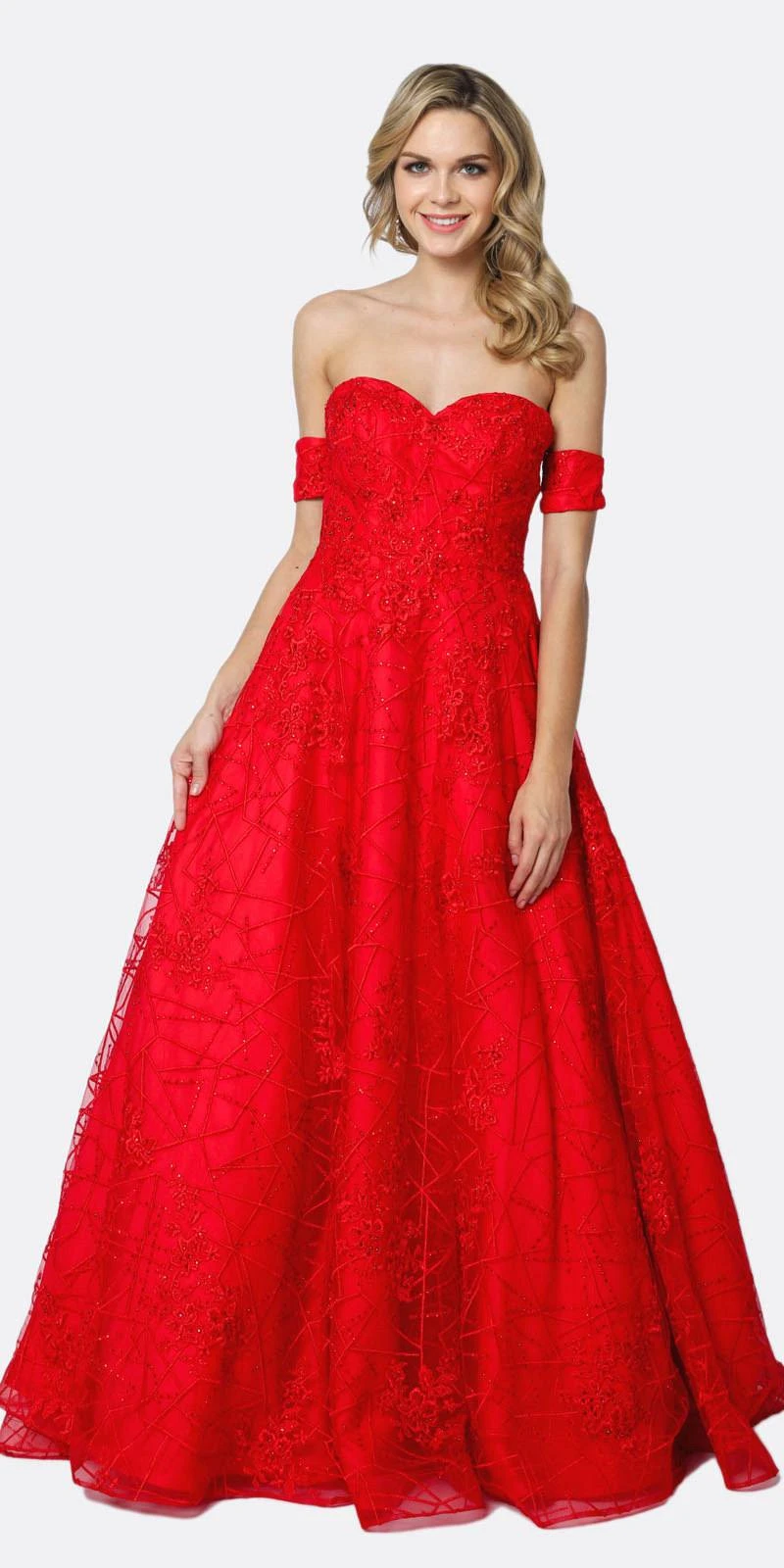 Enjoy the evening in this beautiful floor length A-line gown by Juliet 692, which features an off the shoulder-like detachable arm bands and reveals a sweetheart neckline. A beautiful long A-line dress with a crinoline underskirt, which creates a poofy A-line effect great for prom, red carpet or any special occasion!