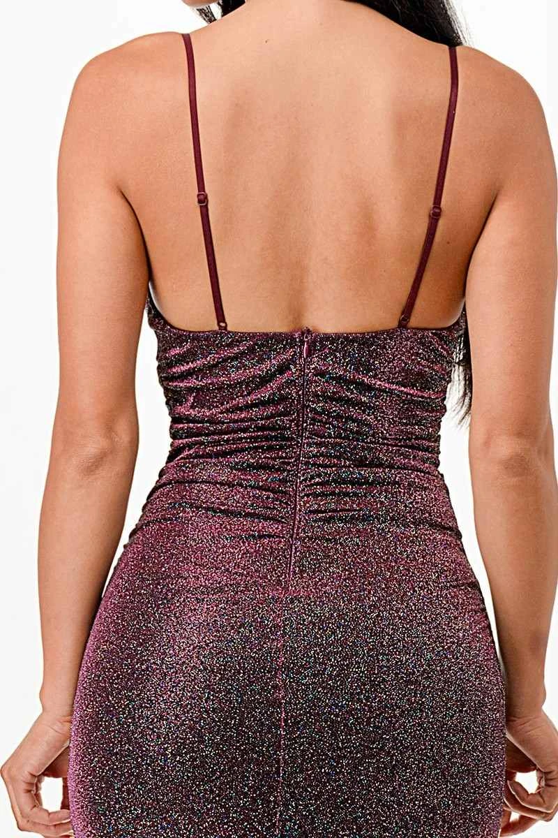 Experience red-carpet glamour with La Scala 26004. This long, floor length dress is fitted and features a cowl neckline, glittered slinky, open back and hugs curves making it perfect for special occasions. Sleeveless and made from sparkling knit jacquard with spaghetti straps, you’ll be ready to shine!