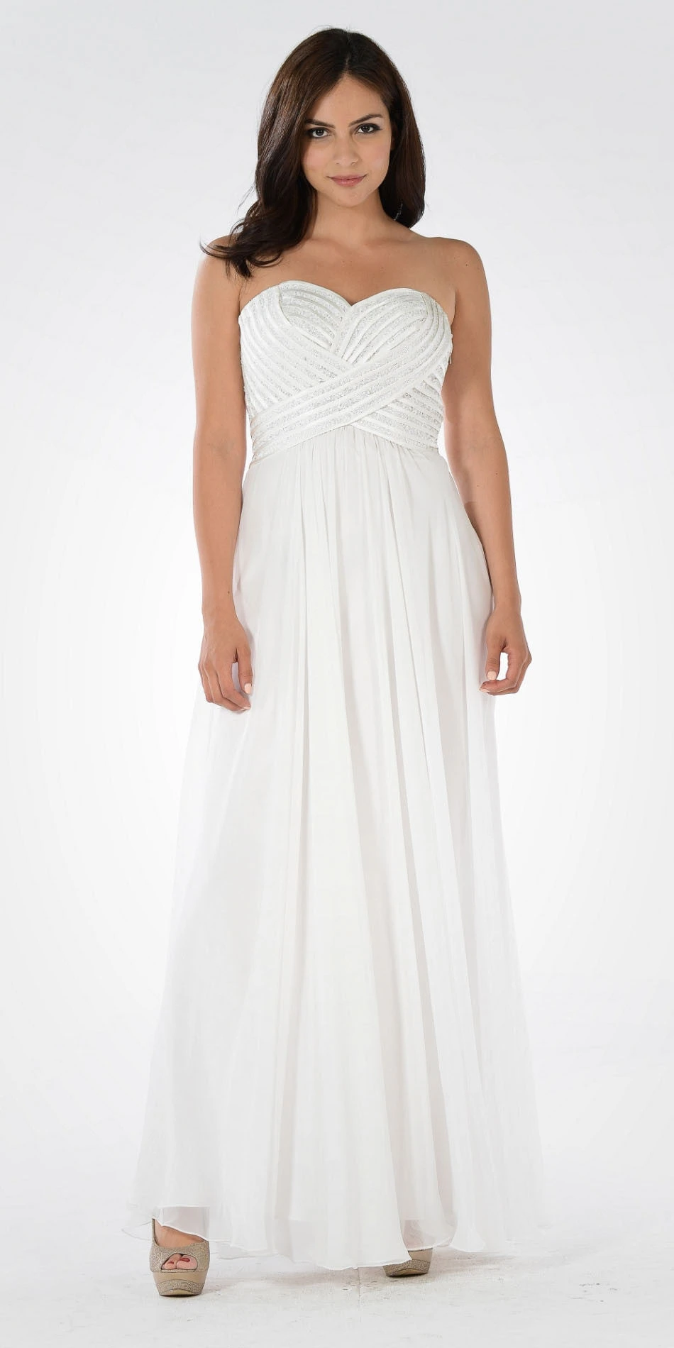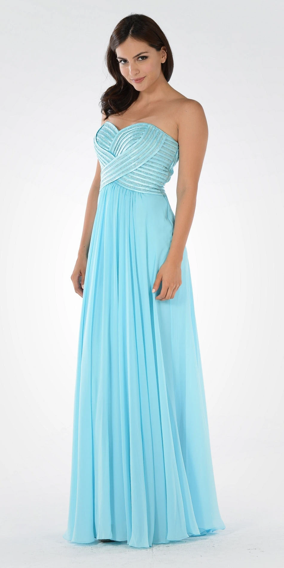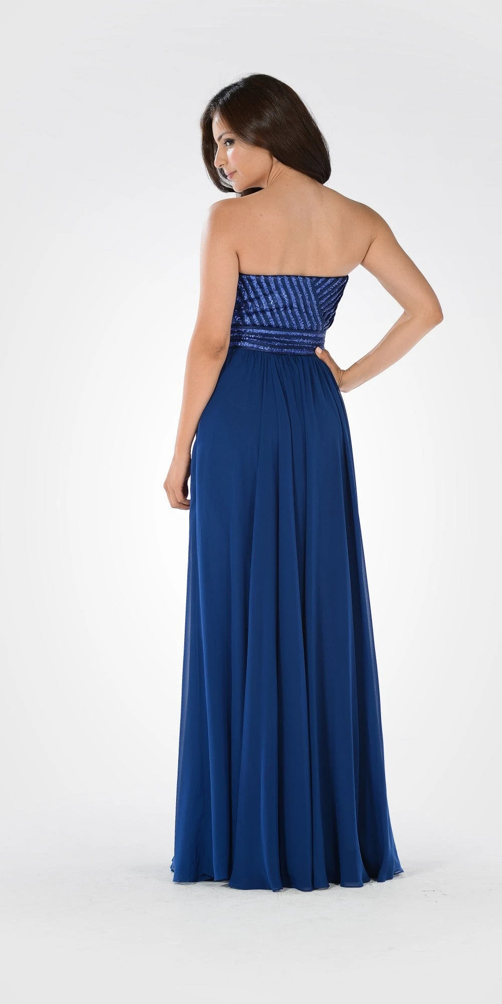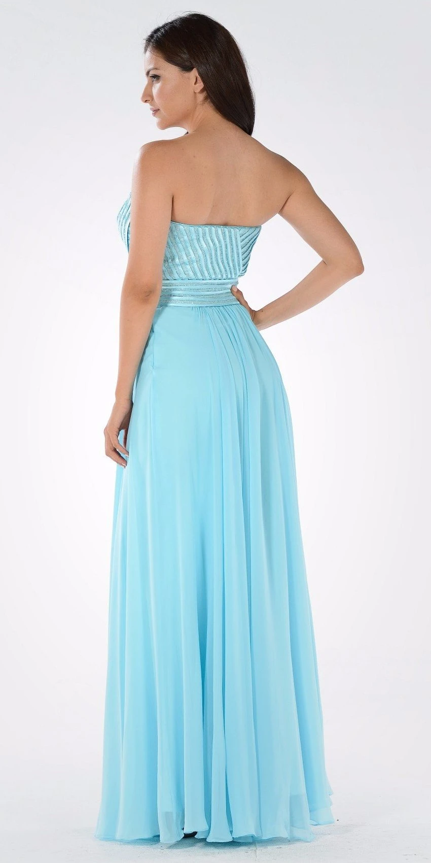 This sweetheart neck strapless gown sequined bodice in a satin stripe pattern, is an adorable outfit for prom, awards night, dinner party and any other formal events.