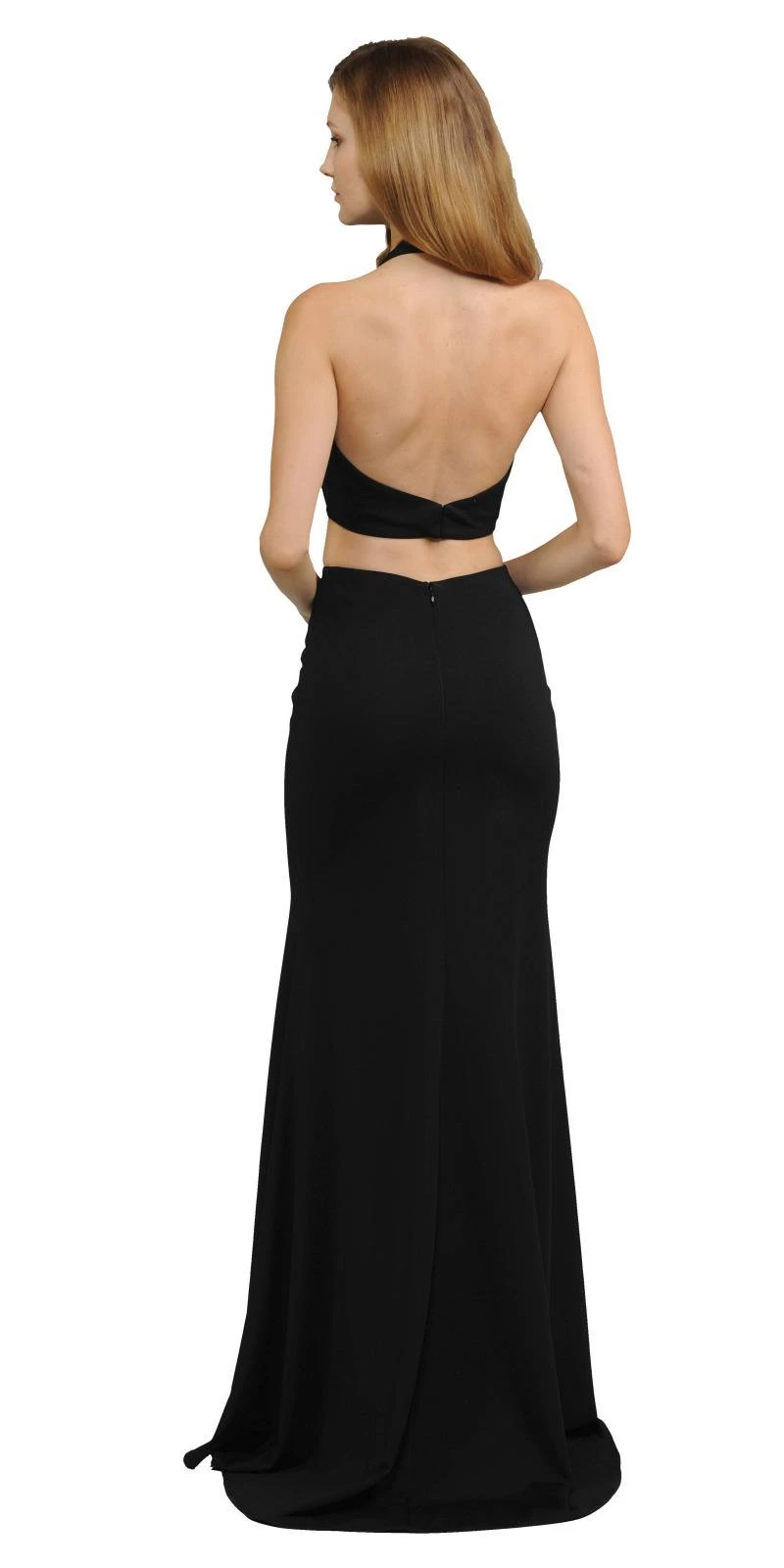 Stand out and shine wearing Edward Young 8128 two-piece long dress. This fashionable halter dress has crop top with deep V-neck and sexy open back, definitely a fabulous and jaw-dropping attire for prom, awards night, gala and pageant.Â